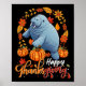 Affiche Bon thanksgiving Manatee En Feuille Citrouille