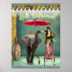 Une vignette d'art amusante et amusante, avec une fille vintage en fût sur sa chaise, un éléphant tenant un parapluie, et "Hello Retirement" en néon. C'est peut-être ce dont ils rêvent...