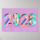 Carte Bonne année 2026 avec des chiffres métalliques colorés sur fond violet brillant