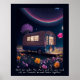 Un poster de Whimsical pour les amateurs de livres présente un paysage rêvé d'art numérique généré par l'IA avec un bookmobile illuminé dans un champ de fleurs sous un ciel nocturne. "Rencontrez-moi sous les étoiles et nous pouvons lire tous nos livres interdits préférés ensemble" le texte peut être customisé à votre propre message spécial