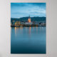 Photographie du paysage de la ville allemande de Boppard, photographiée pendant l'heure bleue. Avec des lumières réfléchissantes sur la surface du Rhin. Photo : Sebastian Worm