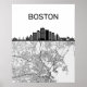 The city skyline of Boston, Massachusetts including landmarks with the map of Boston underneath.