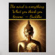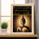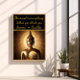 Un majestueux Bouddha doré se dresse paisiblement, berçant d'une main une fleur de lotus blanc. Radiant une lumière chaude, la figure est placée contre un halo lumineux, symbolisant l'illumination et la sérénité spirituelle dans une atmosphère tranquille.