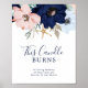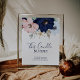 Ce signe de mariage et de mémoire à bougie naútico moderne est parfait pour un mariage en croisière ou à la plage. Le design fantaisiste présente des fleurs aquarelles rose blush et bleu marine avec des accents d'étoiles de mer dorées, lui donnant une ambiance balnéaire.