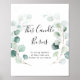 Ce panneau de bougie verte d'eucalyptus pour l'été est parfait pour un mariage simple. Le design présente de belles feuilles d'eucalyptus vertes peintes à l'aquarelle, inspirant un charme naturel.