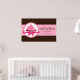© 2014 Socialite Designs. Design élégant d'affiche incorporant un cupcake avec glaçage rose à l'intérieur d'une dentelle ronde. Votre texte entre dans une bannière rose et blanche avec un bord de dentelle coquillée. Un ruban rose apporte une touche d'élégance au design. L'arrière - plan a un motif damassé marron.