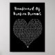 Vos paroles de chanson préférées et de la musique faite dans l'art mural. Vous pouvez donner à votre conjoint comme un cadeau d'anniversaire mariage pour se souvenir de votre première chanson de danse ou donner comme un cadeau de paroles de chanson mariage pour un couple marié. Vous pouvez aussi donner comme un cadeau de paroles de chanson pour un anniversaire ou un cadeau de Noël unique. Nous avons une grande variété de dessins et de chansons pour vous de choisir parmi pour faire faire vos paroles de chansons spéciales dans l'art, imprimé et ensuite ont encadré. Nos cadeaux de musique et de paroles encadrées font des cadeaux romantiques de la journée des valentines ou donnent une chanson mariage paroles imprimer à des amis pour leur propre anniversaire mariage. Nous sommes numéro un pour les cadeaux de paroles de chansons et les tirages de paroles de musique, s'il vous plaît voir la collection complète d'affiches de musique.