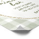Célébrez la future mariée avec notre panneau de bar mimosa à thème de la douche nuptiale du chalet, un délicieux mélange de charme douillet et d'art fantastique. Ce design magnifiquement conçu capte l'essence d'une fête d'automne chaleureuse et accueillante, ce qui en fait le choix parfait pour honorer la mariée spéciale dans votre vie. Le panneau est orné d'une délicate aquarelle dessinée à la main avec un bouquet fleur sauvage et un arc vert, offrant une bordure élégante et sereine qui encapsule vos détails de douche nuptiale. Ce cadre est dressé contre un arrière - plan en vichy vert charmant, évoquant l'attrait intemporel de style cottage douillet. L'utilisation d'éléments de police manuscrits et ludiques ajoute une touche personnelle et intime à votre faire-part, invitant les clients avec chaleur et charme. La typographie fantaisiste renforce l'atmosphère cosy et accueillante du design. L'esthétique générale allie les couleurs et les textures apaisantes de la saison d'automne à la tranquillité de la vie de chalet. Idéal pour une variété de thèmes de douche nuptiale, le design charmant de ce panneau lui assure de résonner avec des invités de tous âges. Customisez le panneau avec votre choix de libellé et de détails pour refléter l'essence unique de votre célébration.