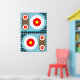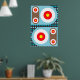 Cercles, répétés. Bleu clair, vert, tons bleu, rouge, jaune. Des éléments circulaires simples se rassemblent pour former une composition circulaire simple. Dessin circulaire vectoriel. Rappelle le design et l'esthétique scandinaves.