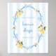 Ajoutez une touche ludique à votre baby shower avec ce panneau "Devinez combien de gouttes de citron" ! Avec des citrons aquarelle, des arcs bleu doux et des rayures bleues et blanches classiques, c’est le point de départ idéal pour votre table de jeu d’devinettes à thème méditerranéen.