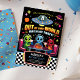 Welcome guests with this fun Out of This World birthday welcome sign featuring cute aliens, a UFO, and a playful retro space diner theme. Neon stars and a classic checkerboard floor add a colorful 1950s galaxy vibe. Personalize with your child’s name and age for a unique space birthday party welcome poster. Perfect as a printable sign for an alien, outer space, or galaxy themed kids party.