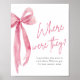 Le panneau "Blush Pink Bow : She's Tying the Knot" (La mariée "Où étaient-ils") est un ajout charmant à toute célébration mariage. Ce panneau permet aux clients de se rappeler et de partager des souvenirs de l'endroit où le couple s'est rencontré pour la première fois, de leur premier rendez-vous et d'autres moments importants dans leur relation. Avec son design élégant et rose vif et son thème ludique "She's Tying the Knot", ce panneau ajoute une touche de romantisme et de nostalgie à l'événement. Présenté sur une table ou suspendu dans le décor, il sert d'entrée de conversation et crée une atmosphère chaleureuse et accueillante pour célébrer le couple heureux.