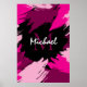 Affiche Brosse nuances de nom rose chaud avec monogramme