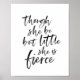 Élégant script de brosse noire de la citation "bien qu'elle soit peu, elle est féroce" de A Midsummer Night's Dream de William Shakespeare contre un arrière - plan blanc. *Veuillez noter que le filigrane Zazzle qui apparaît dans l'aperçu du zoom n'apparaîtra PAS sur le produit imprimé final. © Bois de rose et agrumes