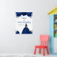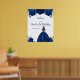 Ce panneau d'accueil de fête d'anniversaire présente des fleurs bleu marine en parties scintillant et une belle princesse aux cheveux bruns et une robe élégante. C'est parfait pour une fête d'anniversaire.