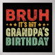 Bruh C'est l'anniversaire de mon grand-père, drôle de dicton design pour les femmes hommes, filles et garçons. tenue vintage pour petit-fils et petite-fille qui aiment célébrer la fête de naissance de grand-père dans le style. Famille jumelant des tee - shirts pour célébrer les anniversaires de grand-père. Une famille géniale qui associe habillement vintage pour petite-fille et petit-fils pour célébrer l'anniversaire de grand-père d'une manière très créative. Portez fièrement cette tenue brutale dans votre fête d'anniversaire de grand-père et faites-le sourire.