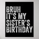 Affiche Bruh It's My Sister's Birthday Funny Birthday Brot