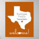 Faites savoir à toute la famille où aller pour la réunion annuelle avec ce panneau de design en forme d'état du Texas. Un espace pour le nom de votre famille et un accueil chaleureux. Disponible en rouge Tech, marron Aggie, orange brûlé Longhorn, vert Aigle, bleu royal, orange Miner et violet grenouille cornée. Personnalisable en modifiant la couleur de la forme, du coeur ou du texte de l'état. Produits correspondants disponibles, y compris les invitations.