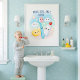 Affiche Brush, Floss, Flush, Wash Kids Bathroom Wall Art