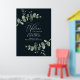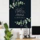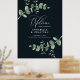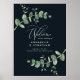 Belle délicate feuillage d'eucalyptus mariage budget bienvenue design de signe de décoration. Moderne élégant sur tendance sauge vert, noir, bleu marine et blanc élégant collection contemporaine rustique. Idéal pour les mariages de printemps, d'été, d'automne ou d'hiver.
