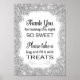 Ce panneau de buffet de bonbons pailleté argenté sera le complément parfait pour le bar à bonbons de votre mariage, anniversaire, enterrement de vie de jeune fille ou baby shower. Il présente un fond pailleté argenté avec une découpe de cadre avec la phrase "Merci de rendre cette soirée si douce. Prenez un sac et remplissez-le de friandises".