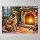 Affiche Bullmastiff Fireplace with Christmas Lights
