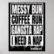 Affiche bun caféine run gangsta rap j'ai besoin de sieste