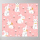 Motif sans couture de lapins blancs mignons sur arrière - plan rose avec des éléments floraux. De mignons lapins blancs et des éléments floraux. De mignons lapins roses avec des fleurs. Charme de Pâques Whimsical. Pâques, motif, mignon, lapin, sans couture, illustration, animal, dessin animé, floral, fleur, printemps, rose, décoration, lièvre, arrière - plan, nourrisson, or, blanc, vacances, été