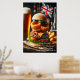 Découvrez un Dublin Delight avec cet irrésistible hamburger de style pub britannique. Une pâtisserie de boeuf Angus, grillée à la perfection salée, est superposée avec du fromage cheddar vieilli, des anneaux croustillants d'oignon, et une délicate bruine de sauce HP, le tout niché entre un pain muffin anglais grillé. Un petit drapeau britannique ajoute une touche de fierté britannique, tandis qu'une pinte de bière vient compléter ce délice culinaire britannique.