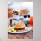 Gros plan du délicieux hamburger frais au fromage et au bacon