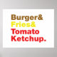 Foodie Drôle Humour de restauration rapide ~ Burger et Fries et Ketchup de tomate. Globe Trotters se spécialise dans l'imagerie idiosyncratique du monde entier. Vous y trouverez des Cartes de Voeux, Cartes Postales, Posters, Mousepads et plus encore.