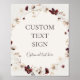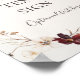 Cette affiche personnalisée de fleur sauvage de couleur bordeaux | cartes et cadeaux beige est parfaite pour votre mariage classique rustique boho rouille, blanc, marsala. Le design présente une couronne bohémienne ou un bouquet de fleurs sauvages modernes aquarelles violettes, rouges, grises et roses saumon ainsi que de la verdure orange brûlé et dorée. Les pavots et l'orge sont représentés dans le design. Il est idéal pour un mariage champêtre simple et minimaliste d'automne ou d'été, de printemps. Veuillez trouver d'autres papeteries de mariage assorties ou coordonnées dans le reste de cette collection.
