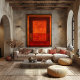 A luminous color field abstract artwork featuring layered rectangles of burnt orange, deep crimson and warm ember tones. Soft translucent pigments create calm depth and chromatic harmony, forming a minimalist contemporary composition ideal for modern design lovers and elegant interiors.