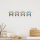 Cette affiche amusante présente la vue avant de quatre bus de camping-car rétro vintage en nuances de vert, rose, jaune et bleu. Un ajout mignon à une nurserie.