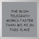 Texte qui dit avec humour "Le télégraphe de brousse fonctionne plus vite que le Wi-Fi dans cet endroit". "Bush telegraph" est l'argot australien pour désigner les réseaux de commérages, sous-entendant que la communication par bouche-à-oreille est plus efficace qu'Internet.