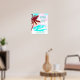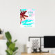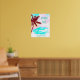 Travel poster print of a palm tree in Byron Bay, a coastal town in NSW, Australia in an arty modern colorful vintage style of travel art print. Blue sky, Summer vibe with tropical palm tree hipster vibe in country Australia.