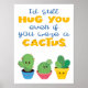 Cette affiche amusante présente trois dessins animés colorés cactus un arrière - plan blanc. La légende, en bleu calligraphie et toutes les polices jaunes casquettes, dit que je vous serrais encore dans mes bras même si vous étiez un cactus.