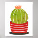 Un cactus en baril avec une fleur dans un pot rouge. Un art minimaliste chic.