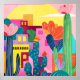 Une scène désertique vibrante avec des cactus en fleurs, des bâtiments géométriques colorés et un coucher de soleil éclatant. La palette de couleurs audacieuse mêle des roses chaudes, des jaunes et des bleus profonds, créant une atmosphère sud-ouest animée. Parfait pour ajouter une touche de chaleur et de charme artistique à tout espace !