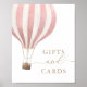 Invitations amis et famille pour laisser leurs cartes et cadeaux dans un endroit désigné avec cette enseigne, avec une montgolfière rose et une élégante typographie or.