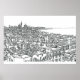 Dessin à encre architecturale de Cadiz Espagne en style graphique.