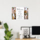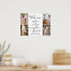 Bienvenue les invités à une fête prénuptiale de couple élégante avec un poster personnalisé de 4 photos en collage de 45x60 cm. Les images et tout le texte sont simples à personnaliser. (CONSEIL DE PLACEMENT D'IMAGE : un moyen facile de centrer une photo exactement comme vous le souhaitez est de la rogner avant de la télécharger sur le site Web de Zazzle.) Le design moderne minimaliste noir et blanc présente quatre images de votre choix, une calligraphie de style manuscrit chic et une typographie vintage élégante. Ce panneau de bienvenue pour la fête de mariage du couple est un moyen élégant de partager des photos de fiançailles dans le cadre des décorations de célébration de votre jour spécial. Félicitations à la mariée et au marié !