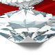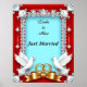 Un cadre artistique rouge orné de diamants et de roses, avec deux colombes blanches et un anneau symbolique en or, représentant l'amour, le mariage et la célébration.