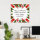 Un cadre de Noël décoratif avec des branches de pin verdoyantes ornées de fleurs rouges et d'arcs. Idéal pour les projets de fêtes, les invitations et les projets festifs.