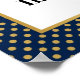 Un design audacieux et à fort contraste présentant un fond bleu marine profond avec des pois dorés et un cadre doré structuré.