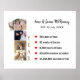 Célébrez votre premier anniversaire de mariage avec ce magnifique poster ! Avec des statistiques amusantes comme 365 jours d'amour, 52 semaines de baisers, 8 760 heures de câlins, 525 600 minutes de sourires et plus de 31 millions de secondes de plaisir, ce poster créatif capture des moments précieux de la première année d'un couple marié. Cette décoration murale est parfaite pour exposer des souvenirs spéciaux et célébrer la première année de mariage d'un couple en tant que mari et femme. Tous les mots sont entièrement personnalisables et le nombre de photos du collage est de 5 emplacements pour vos photos spéciales.