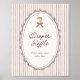 Cute and whimsical 'Cafe Bebe' French cafe inspired baby shower 'Diaper raffle' sign with a soft brown striped background and a hand drawn illustration of a coffee cup with a brown bow - perfect for a gender neutral, coffee themed baby shower with a vintage, Parisian café style.