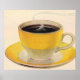 Image vintage illustrant les boissons chaudes et les boissons avec une tasse de café rétro dans une tasse jaune avec une soucoupe.