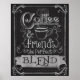 Cet art du café est décoratif et fantaisiste. L'écriture de craie sur une surface de tableau noir est une palette neutre qui fonctionnera dans n'importe quel décor.Le mélange de typographie lui donne encore plus d'intérêt et un sentiment de plaisir. Ajoutez un café/café à votre espace ! ©Fiona Stokes Gilbert Tous droits réservés