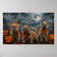 Libérez l'esprit effrayant avec ce design sinistre d'Halloween mettant en vedette une meute de chiens sous un ciel sombre éclairé par la lune, entourés de chauves-souris volantes et de citrouilles lumineuses. Parfait pour ceux qui aiment une touche de fun effrayant avec leurs amis à fourrure!